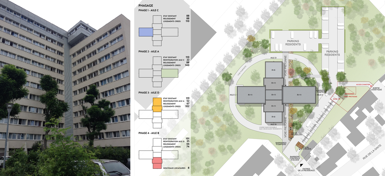 Restructuration en site occupé d’un ancien foyer par phases successives en une résidence sociale de 420 studios
